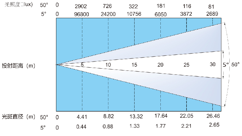 變焦范圍:5°~50°